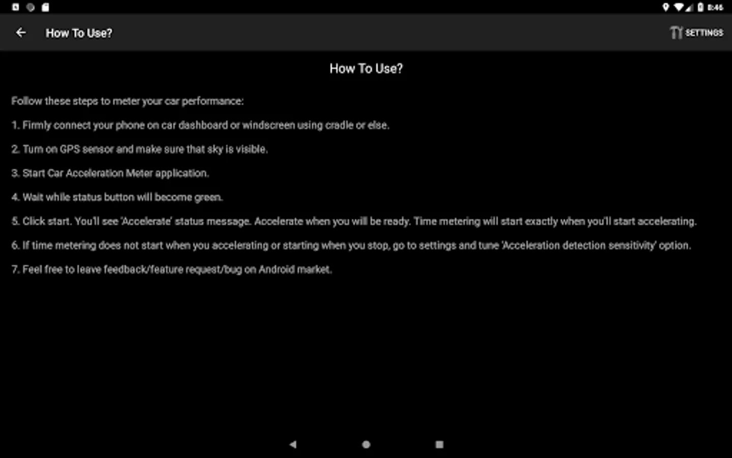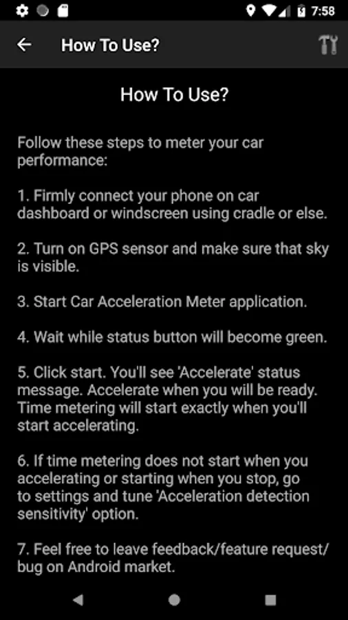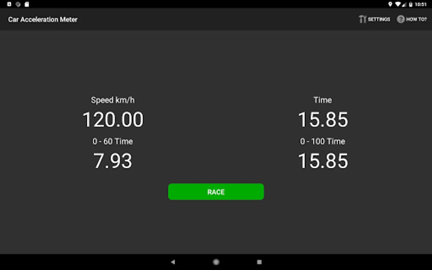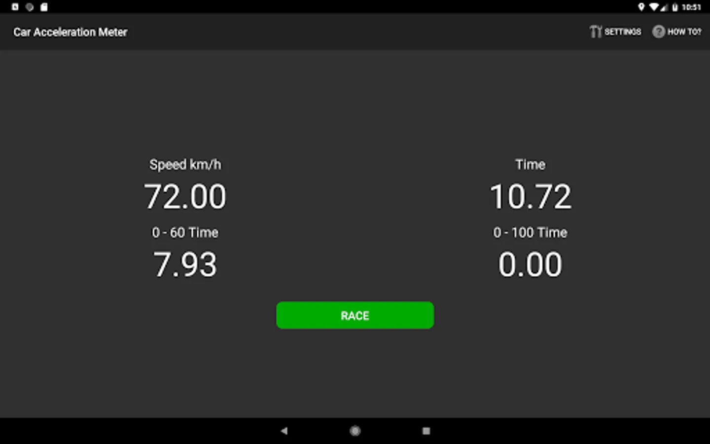 Measure 0-60, 0-100 acceleration time simply using your Android phone.