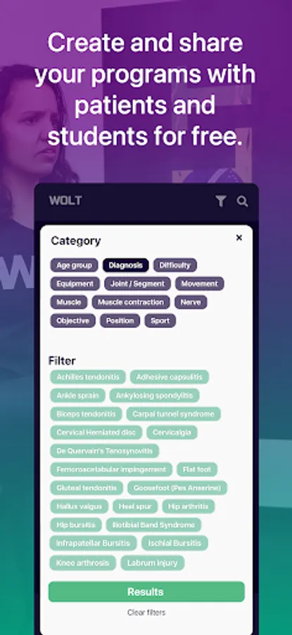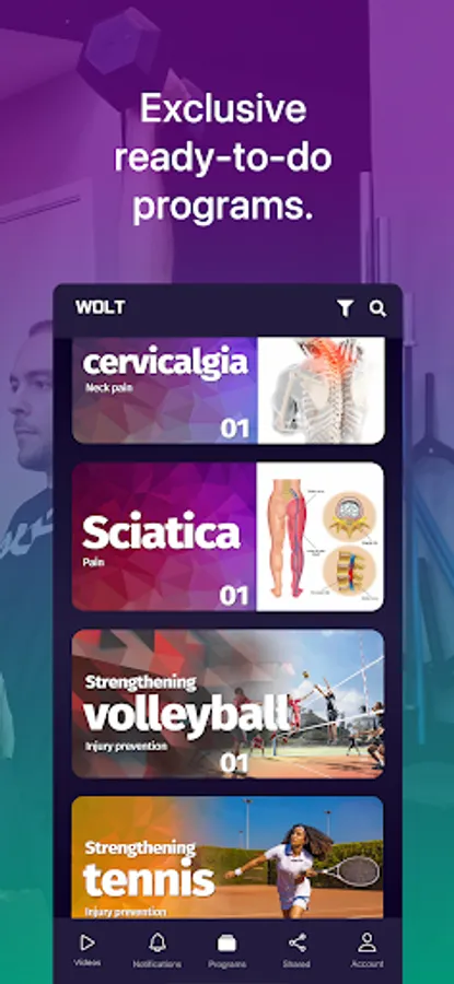 With over 1,000 exercises and programs with complete instructions, Wolt is ideal for physical therapists, fitness professionals, athletes, fitness enthusiasts and anyone who wants to live a healthy, active and pain-free life.