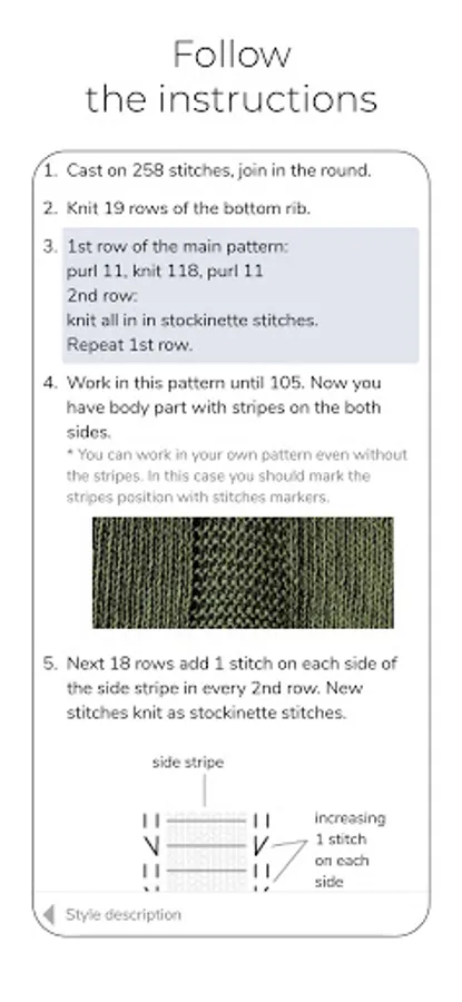 Woolmi currently offers 90 different styles combinations. Each of them can be calculated for any size and for any yarn.
