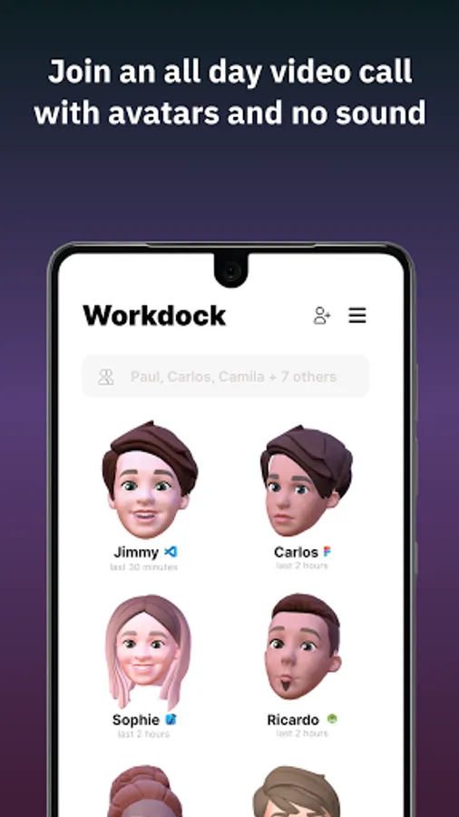 Workdock is an all day video call with avatars and no sound. Instead of guessing if a teammate is busy, you can just tap them on the shoulder and start a call. Perfect for those that need to work very close together.
