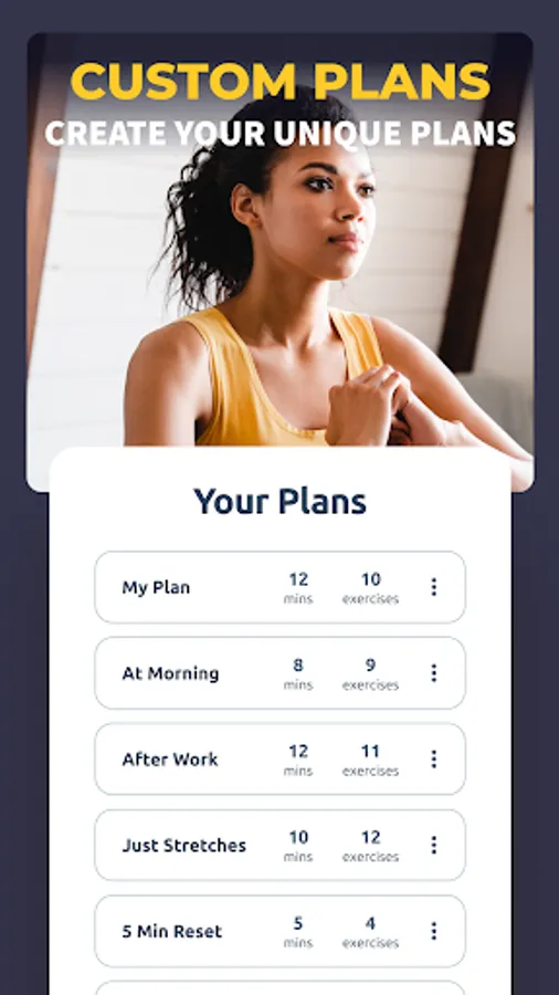 Our workout programs focus on different parts of your body, like abs, belly, butt, legs, arms, shoulders, chest, and back.