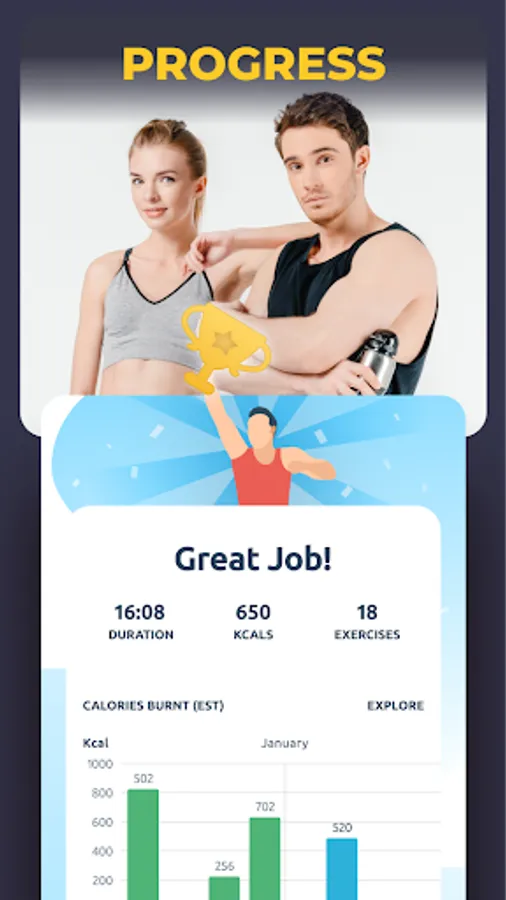 With our systematic approach to creating effective, healthy workout programs you can get a strong body, more energy, flat stomach, burn belly fat and calories. Exercises are simple and enjoyable with helpful animations and videos.