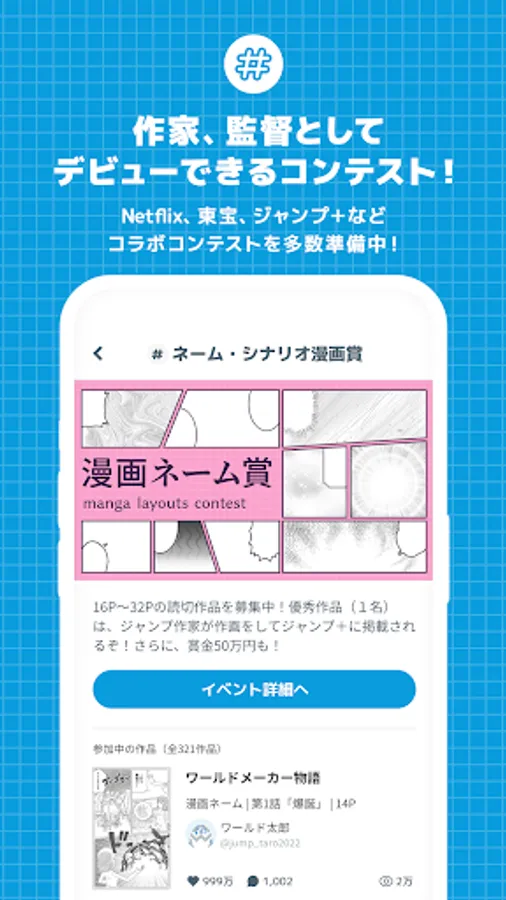 We are planning to hold a series of contests where you can collaborate with various companies and brands and make your debut as a writer or director. Winning works will have a chance to become anime, manga, and movies!