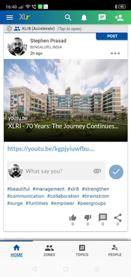 What's more, this alumni space is all XLRI. It is owned by XLRI, built for XLrs, and built by XLrs (it runs on a technology called foreva, developed by a '93 batch BMer!). This means the community is not hosted on a 3rd-party platform - it is a dedicated XLRI app, with all community data fully owned by XLRI, not a 3rd party. It also means that the app is completely customized for XLRI - a home to all the familiar oh-so-XL spaces, from MAXI to OMAXI, Dadu's to JLT Steps, Teacher's Room to Placement Corner, that XLrs, young and old, have all grown up with.