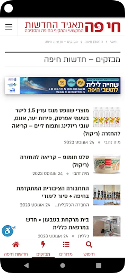 Chai Poh is the leading news site in the Haifa metropolis. Full coverage of local news from Haifa and the Haifa metropolis. News, culture, events, health, society, education, real estate, economy, business, sports, the city of Haifa, consumerism, studies, personalities, calendar of events. Residents also write in Haifa.