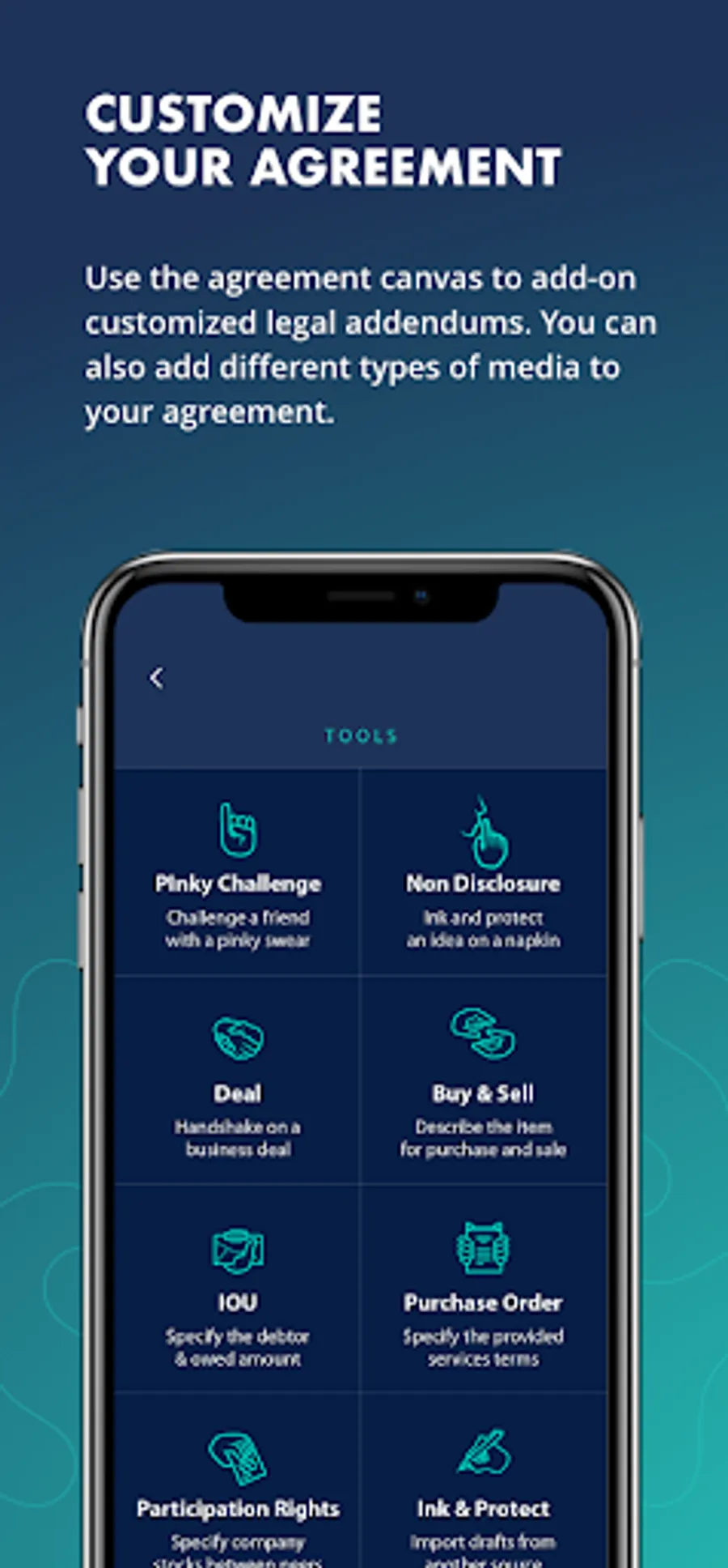- Accessibility: Free to download and for an in app purchase of just $4.99, users can utilize as many of our established formats as they want to create legally non-binding agreements, or they can also purchase individual agreements for 0.99¢, making our app cost-effective, compared to the costly traditional methods