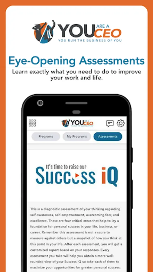 You Are A CEO creates self-leadership & entrepreneurial products and tools that helps our community remove 4 key elements that prevent us from optimizing our success. The goal is to help everyone take charge of their life by empowering them with executive & life coaching through live sessions, personal improvement training, and custom personality assessments. Our free content and tools address the mindset of an individual and how that affects their leadership skills and decisions—and ultimately their success.