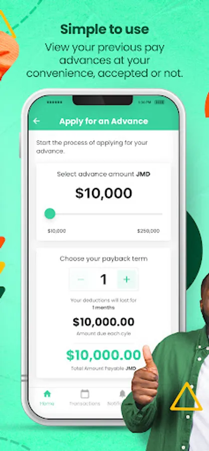 - Get access to a salary advance without worrying about late fees, application fees, disbursement fees or penalties.