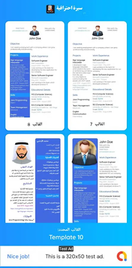 With your professional resume maker app, users can access a set of pre-defined resume templates, which include various layouts and designs to meet different needs. The application allows you to enter personal information such as name and contact information, education and academic qualifications, work experience, technical and personal skills in a smooth and organized way.