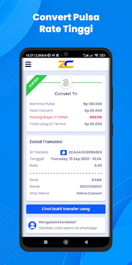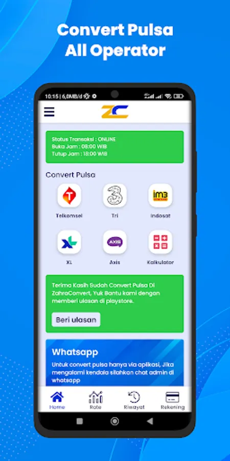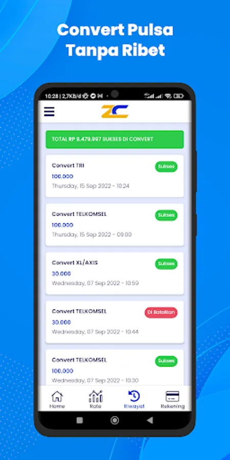 Zahra Convert is an application to convert credit, exchange credit, pulse magic, cv credit to money or account balance, you can also exchange credit to E-Wallet balances such as OVO, GOPAY, DANA, LINKAJA, SHOPEEPAY.
