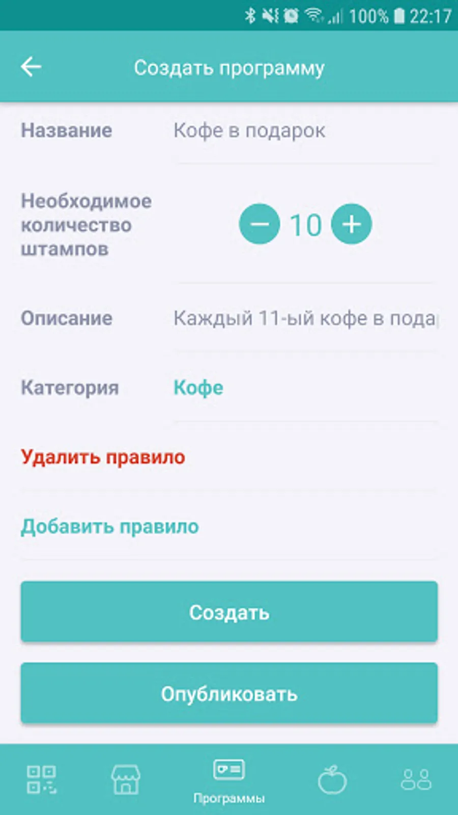 - создавать программы лояльности для своих клиентов;