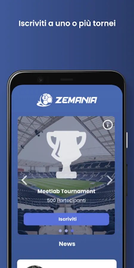 Welcome to the app of the A.S.D. ZEMANIA! We have created our application to communicate directly with our members and for all those who follow our football tournaments.