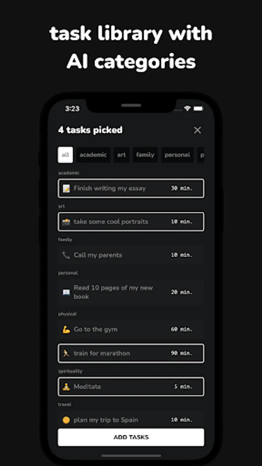 Looking for inspiration? Dive into our task library, filled with all your past to-dos to make the list making process even more streamlined.