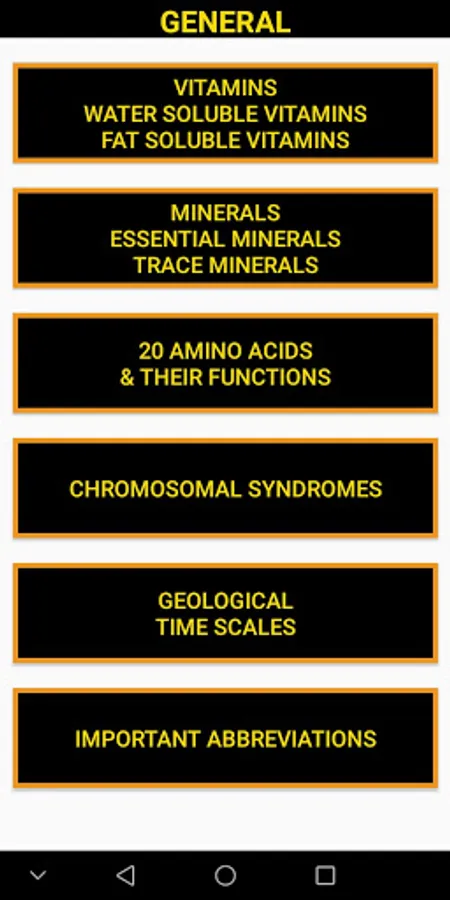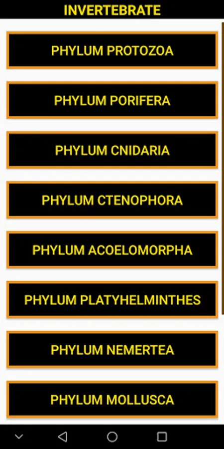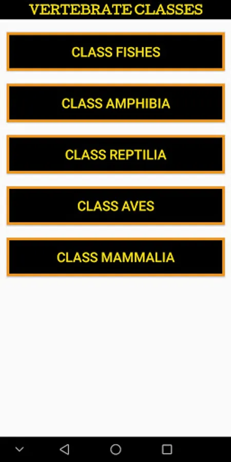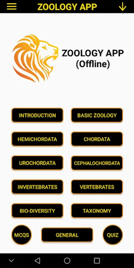 Dashboard of the Zoology App is divided in to twelve section in the form of main buttons, each button opens new activity with relevant topics of zoology.