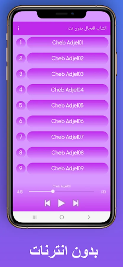 The application "Cheb Al-Ajal without Internet" is an application that allows users to play songs on their smartphones. The application contains a large library of songs by Cheb Al-Ajal, in addition to that, the application provides additional features, which is listening to songs without the availability of the Internet
