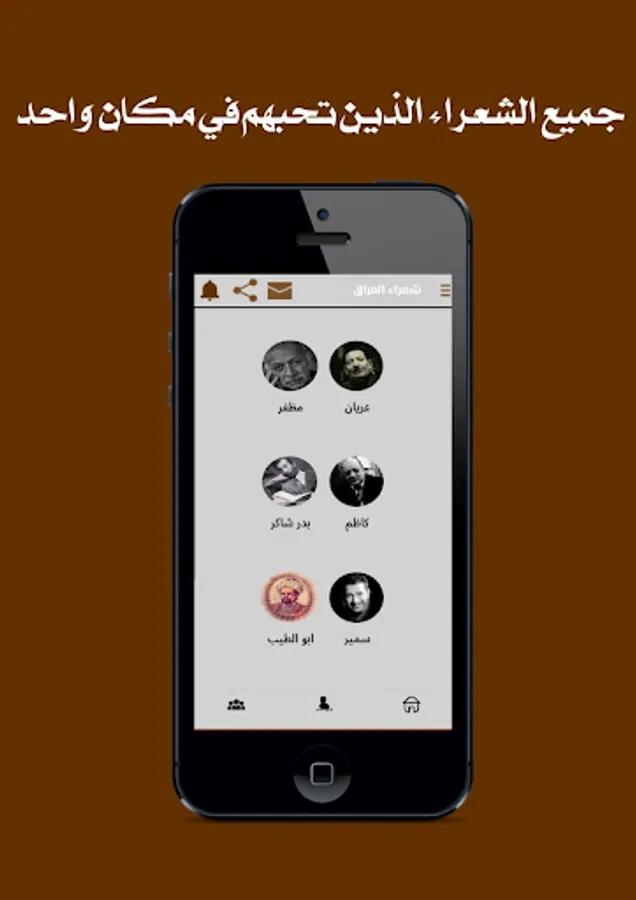The application of poets of Iraq offers you a large collection of poems that belong to the Arab poets of Iraq.