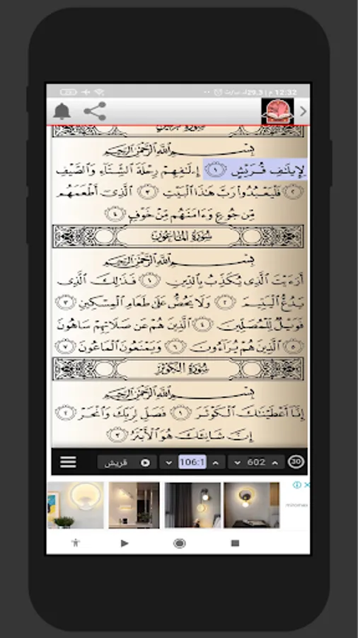 · تشغيل التلاوة في الخلفية في وضع الاستعداد.
