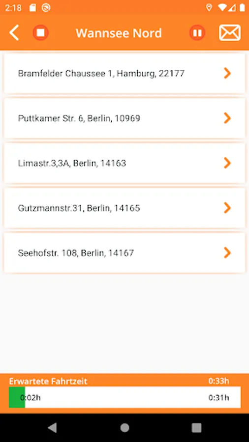 Various scenarios can be created and scheduled in the planning view. In each scenario, all orders from the database are available and can be easily scheduled in different ways. In the map, all orders are shown with colored pins in the same way as in the list view in order to improve the overview. Similar to the list, the tours appear in the colors you have selected. The tours can be displayed as the crow flies and distance travelled. Objects can be paused or disabled. The created tours can be optimized automatically. Time parameters for work performance and distance traveled can be scaled individually, this is used to calculate the total time of the tour.