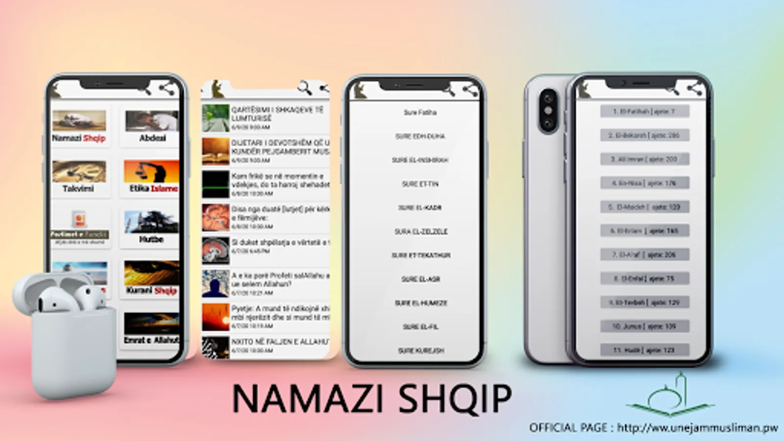 Aplikacioni namazi ne versionin shqip qe perfshijne informacione baze te fese Islame Falja e Namazit, Sure, Hadithe, Radio, Tv...