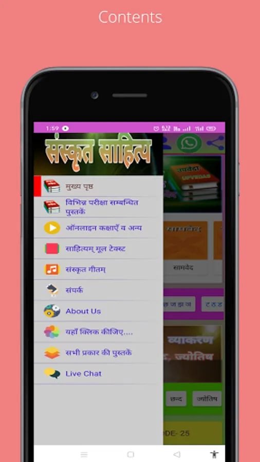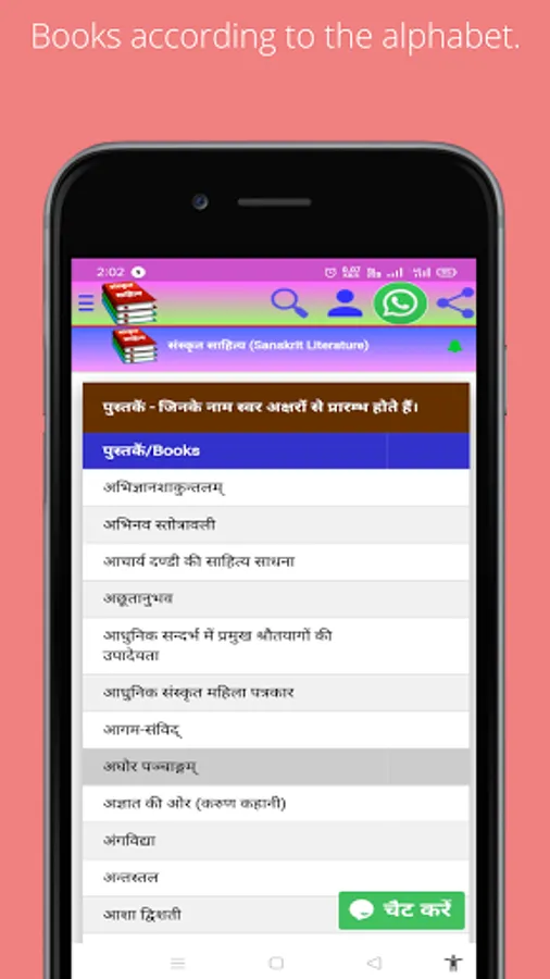 This application of Sanskrit Hindi Literature has been made so that Sanskrit texts can be easily available on mobile phones to students of Sanskrit.