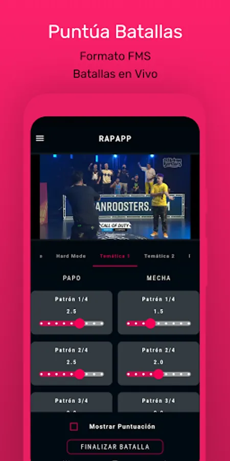 Score battles with a virtual scorecard in FMS format! Share the results on your favorite networks!