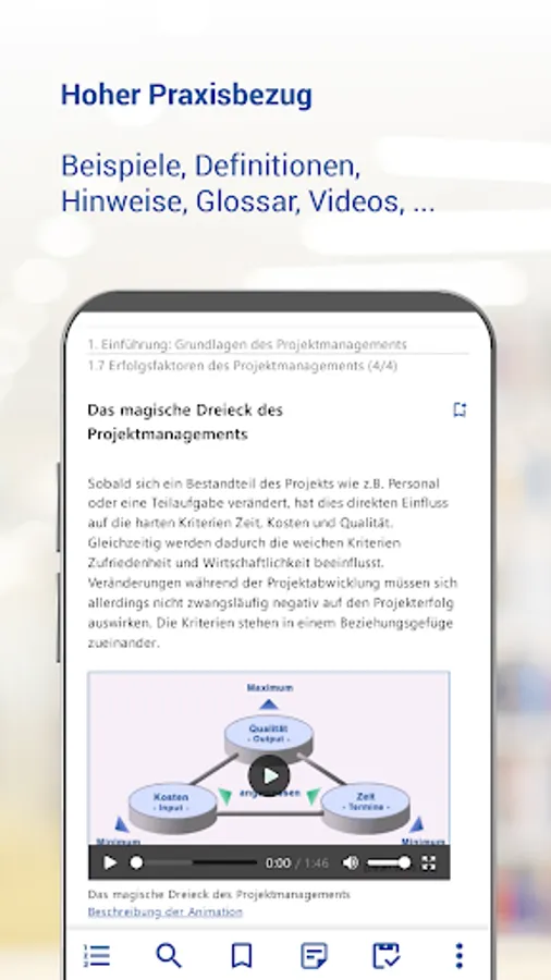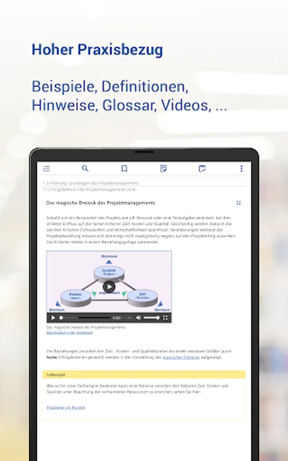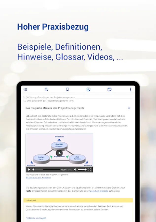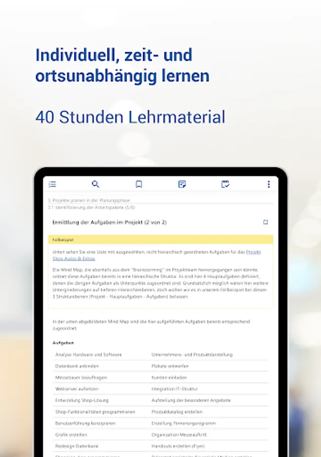 This basic course teaches the essential success factors for professional project management regardless of the industry and presents practical instruments and methods. A wealth of checklists, forms and other templates are provided for your own project work.
