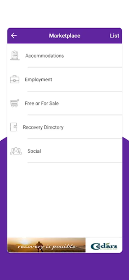 - Marketplace – Accommodations, Employment, Recovery Business Directory, look for a job, sober roommates, and support a local business owned by people in recovery