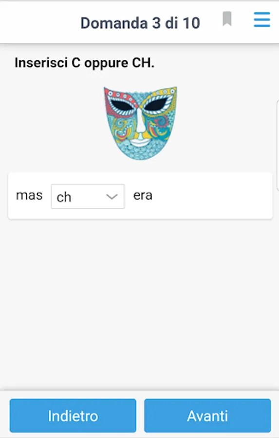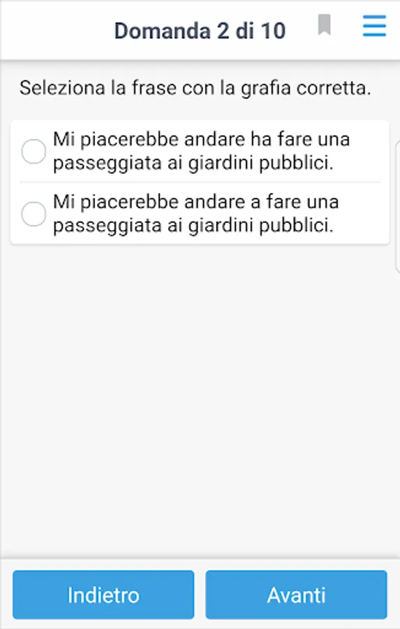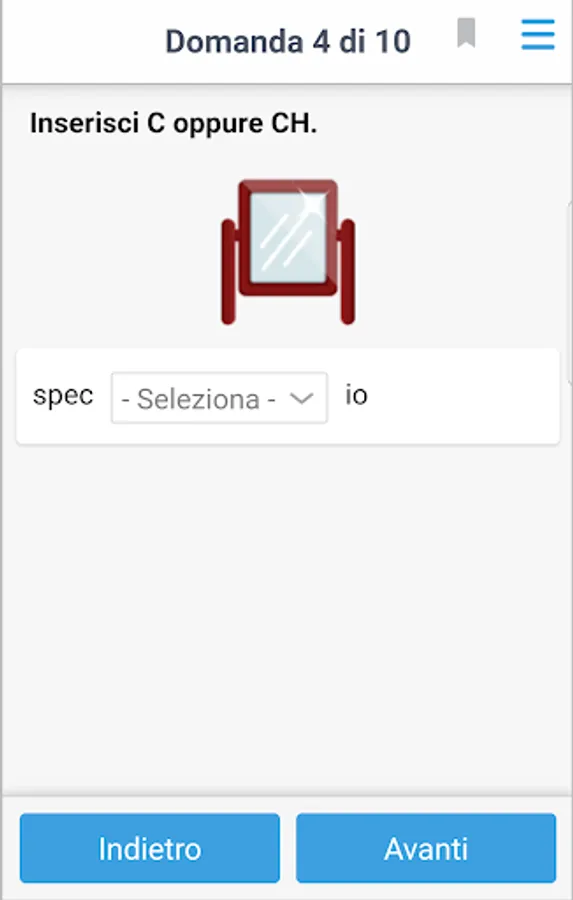 For each of these three sections we are proposed specific exercises, whose requests (for batteries 10) are randomly extracted from large repertoires of questions.