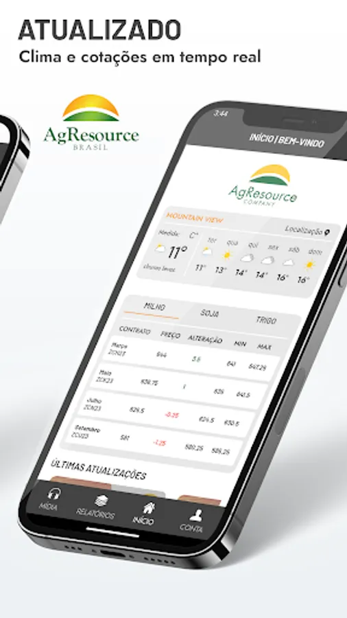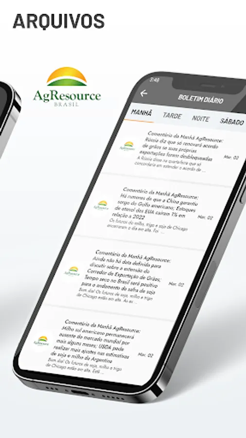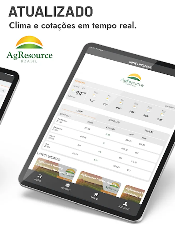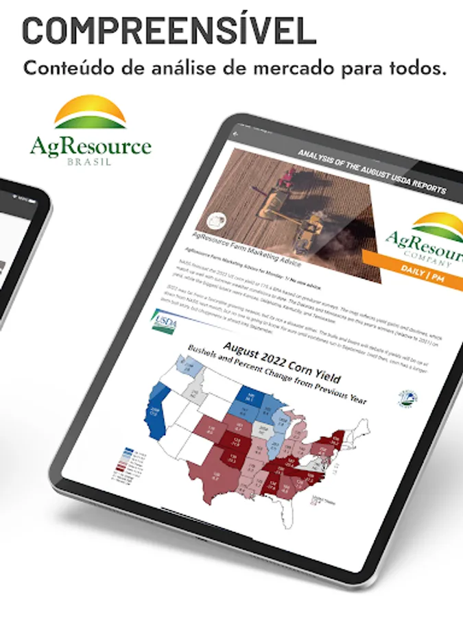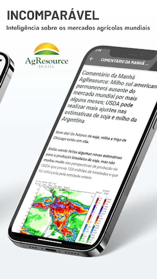 With the AgResource Brasil app, you will always be aware of climate variations for your region, with weather updates also for the United States and other regions of interest in world agriculture, quotes, daily reports, reports in audio format and an exclusive platform for consulting clients to follow market trends and their own commercialization.