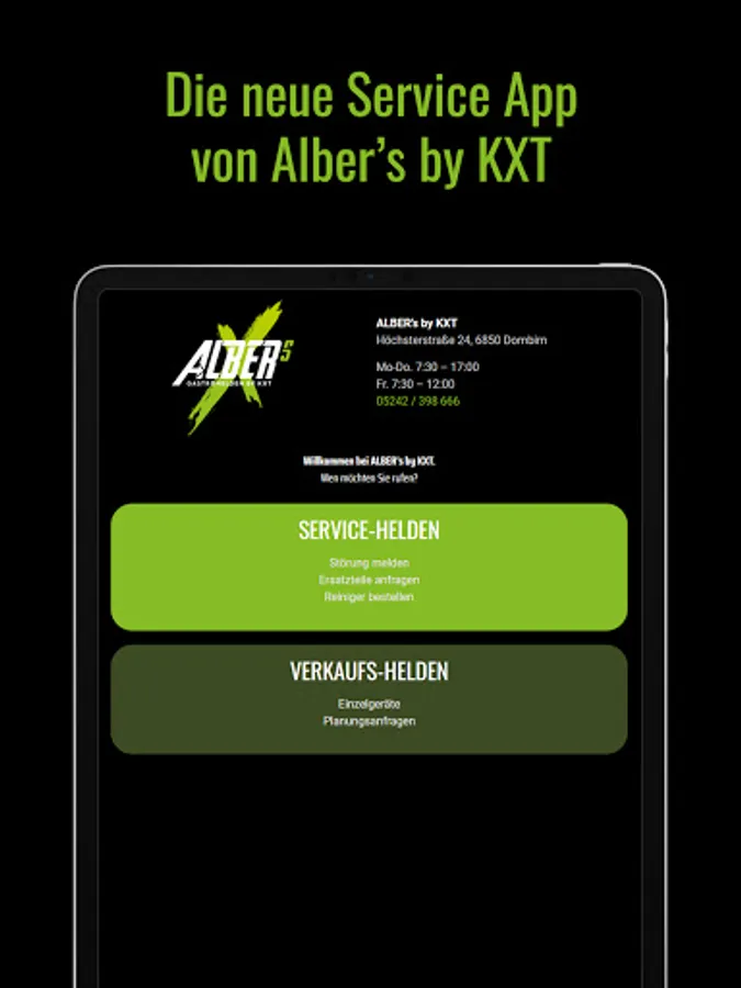 With the new Alber's Service App we improve your service even more. From now on you can make service cases and sales inquiries directly via our service app. Our service or sales team will then contact you.