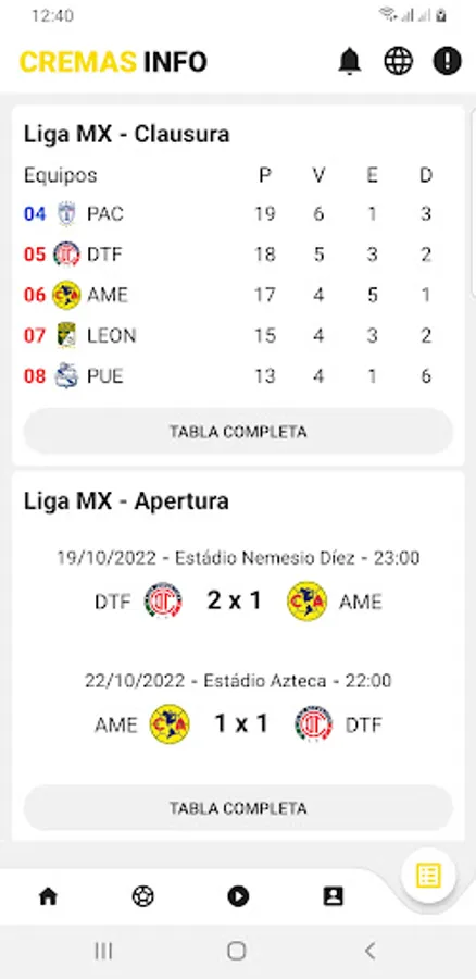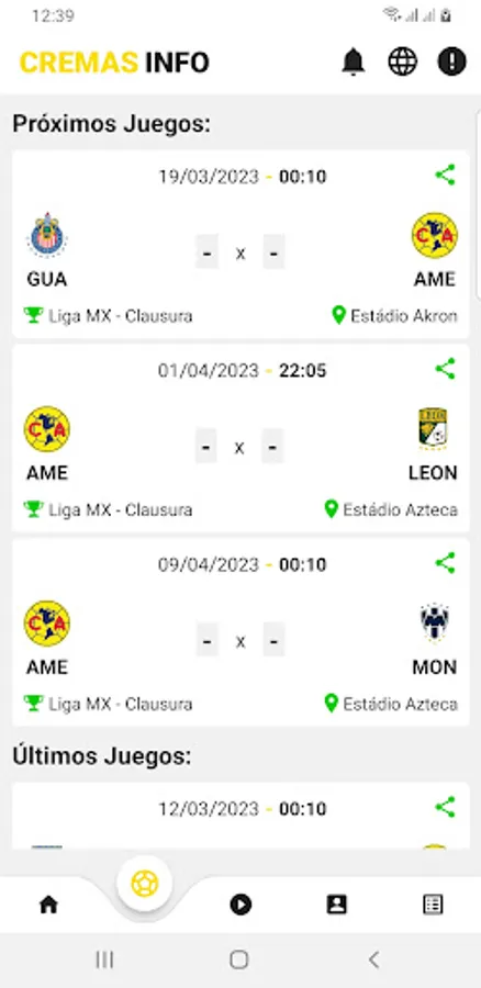 Another important function of the app is the games section in real time, where fans can follow Club América matches minute by minute. In addition, users can also view the results and statistics of the team's previous and future matches.