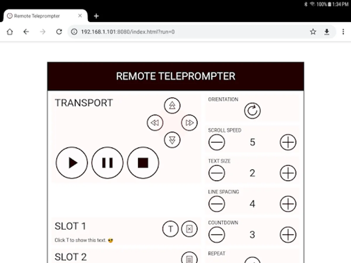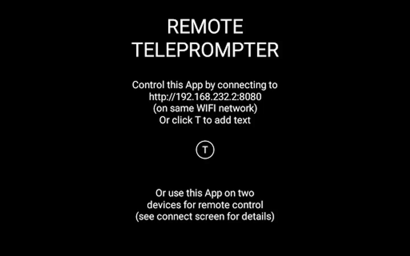With this Teleprompter connected to a WIFI network, it can be controlled by;