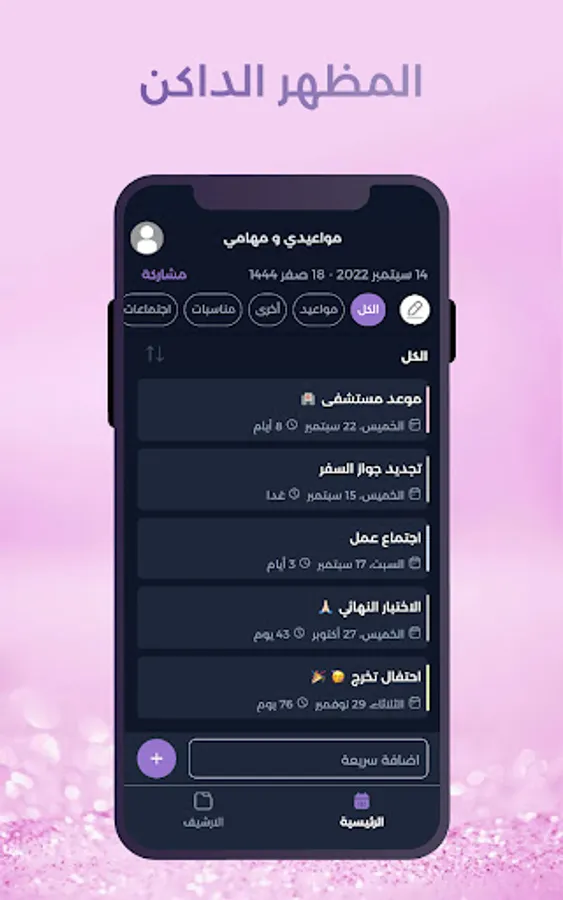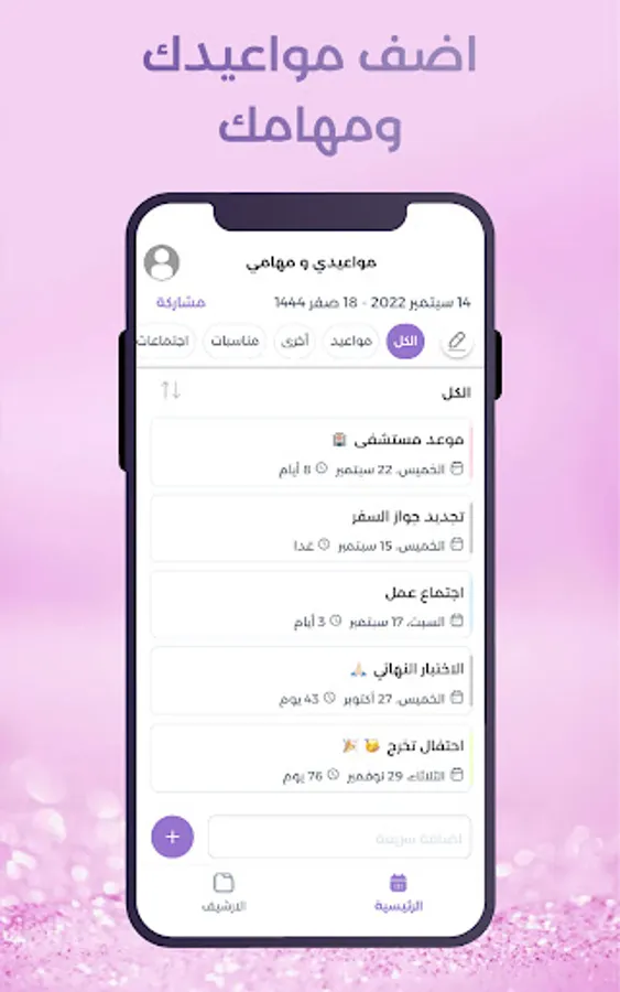 The application of my special appointments and tasks, as well as your special occasions, contains a set of features: