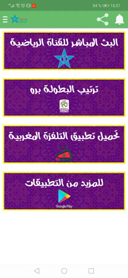 Through the Arryadia Maroc TNT application, you can watch the live broadcast of the Moroccan sports channel, and also follow the professional tournament arrangement.