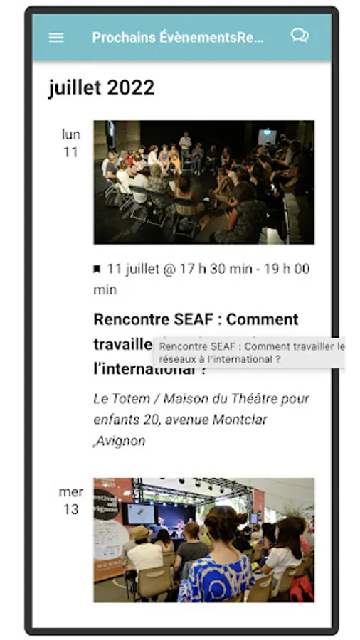 Avignon Enfants à l'honneur is an event organized by the association Scènes d'enfance - ASSITEJ France since 2015, to offer young people aged 9 to 13, as well as families, a real artistic journey at the festival of Avignon, with shows, practical and critical workshops, meetings with companies, and shared moments of discovery and celebration.
