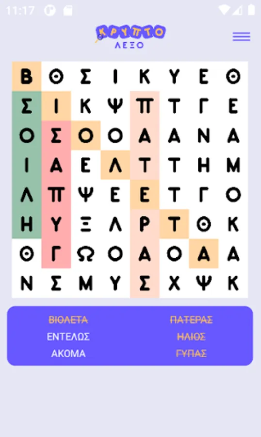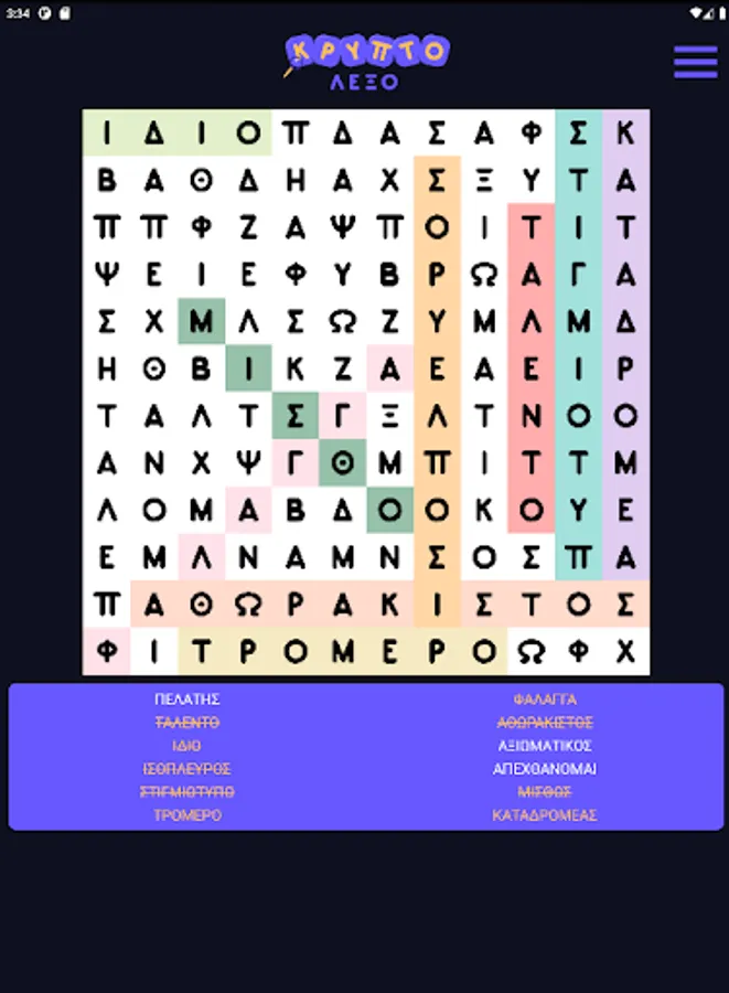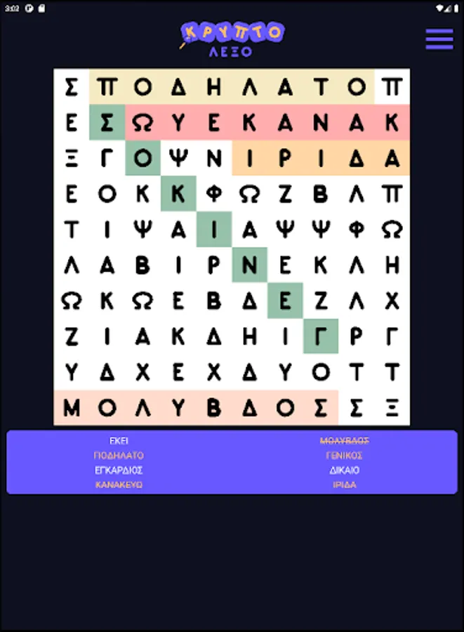 Ο στόχος σας είναι να βρείτε τις λέξεις που είναι κρυμένες στον πίνακα.