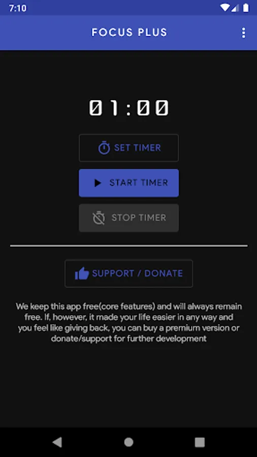 "Focus Plus - Limit phone usage & stay focused" is a phone addiction breaker, self-control app that helps you break phone addiction & stay focused on What matters the most & give yourself an off time from digital distractions by reducing screen time & helps you to limit app usage. It helps you to break phone addiction, limit app usage & stay focused on your work with no disturbances by disabling/locking your Phone for a specified time.