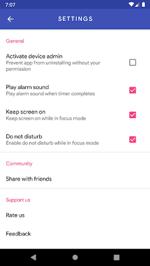 ✔ Device administrator permission - Required to prevent Focus Plus app from uninstalling without your permission
