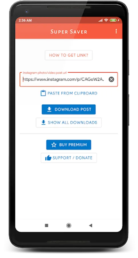 Step 2: Open Super Saver - Download Instagram photos & videos, paste the link & click download