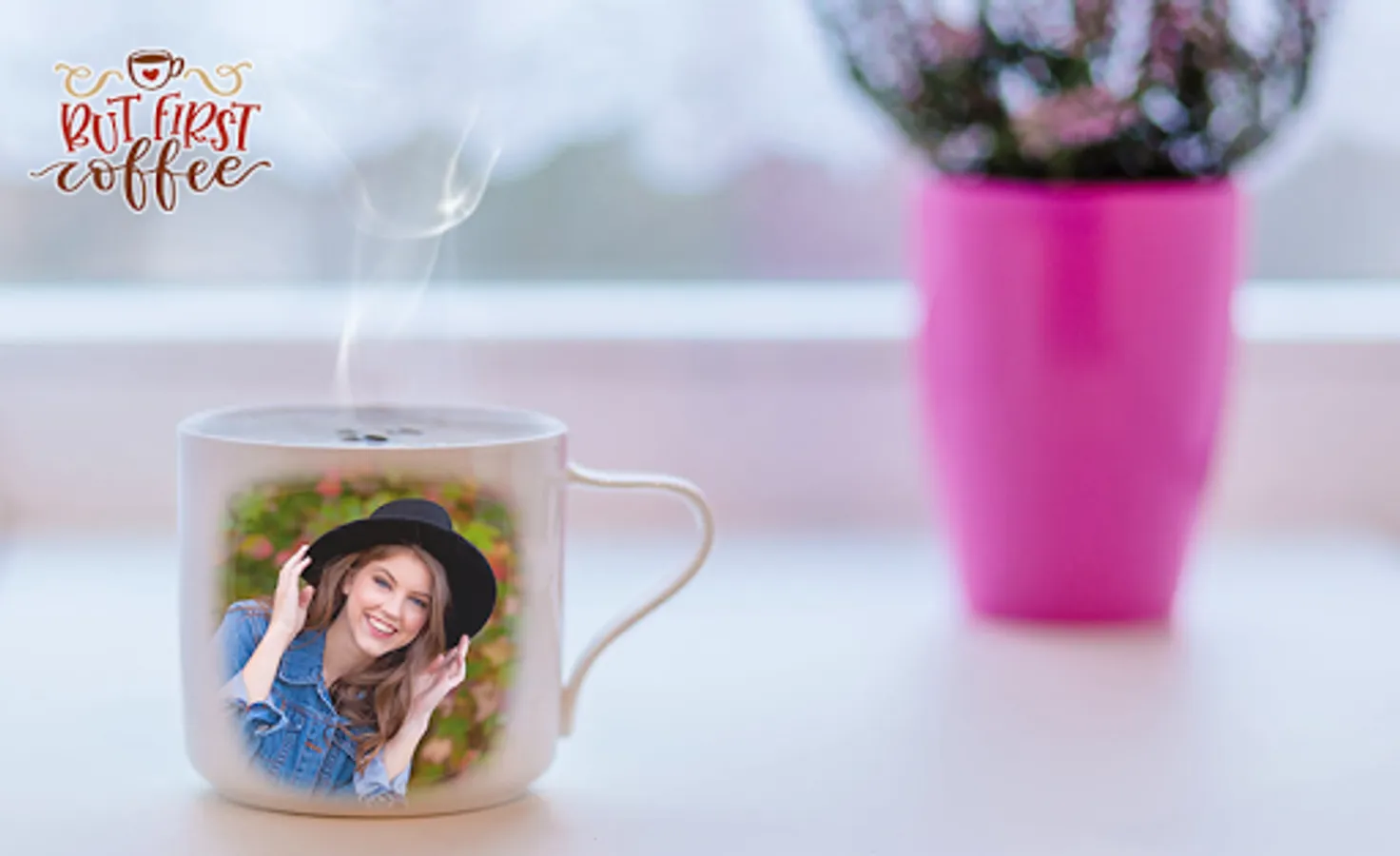 ✱ Save and share your coffee cup photo frame with your friends or family members via social media.