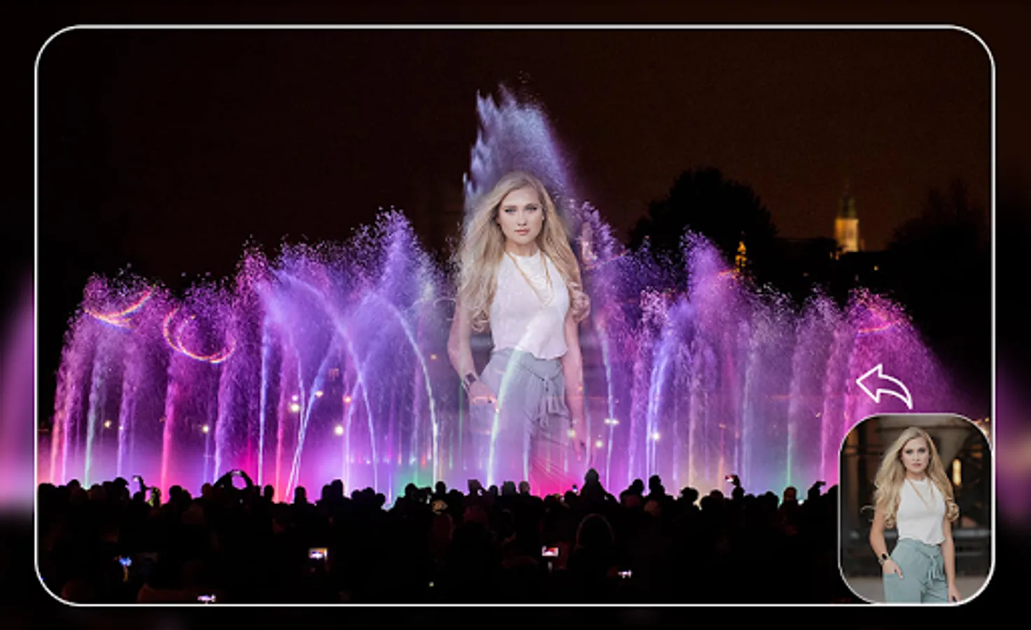➽ Change Colourful Fountain Photo Frame easily with just one tap