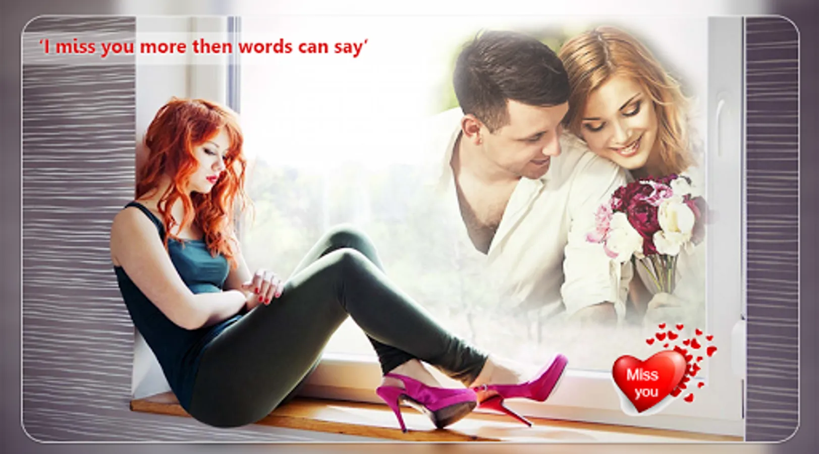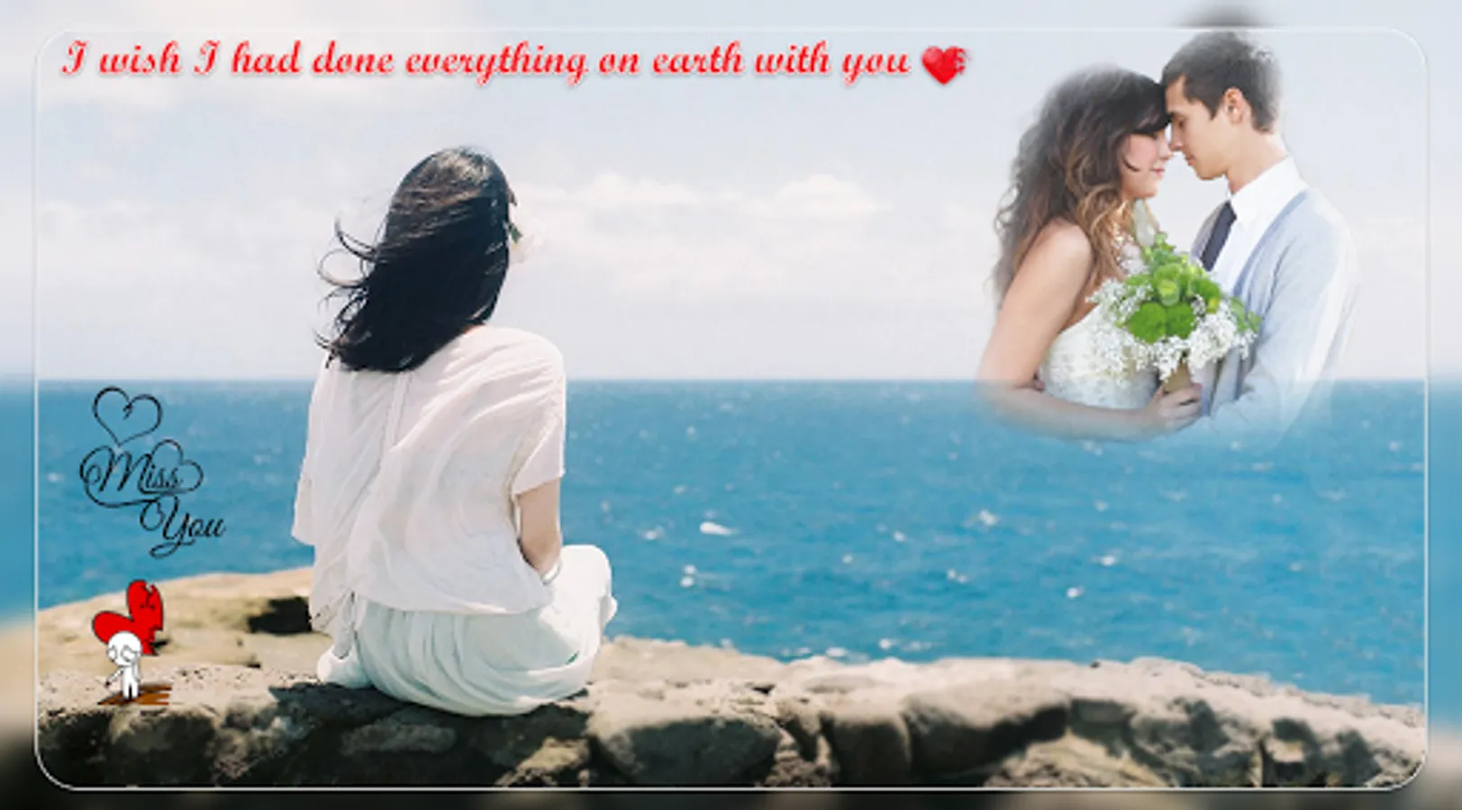 ❋ Apply beautiful and Romantic miss you photo frames to your photos, create memorable photo albums and share in online platforms.