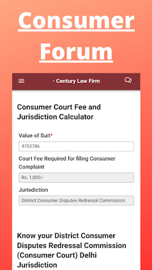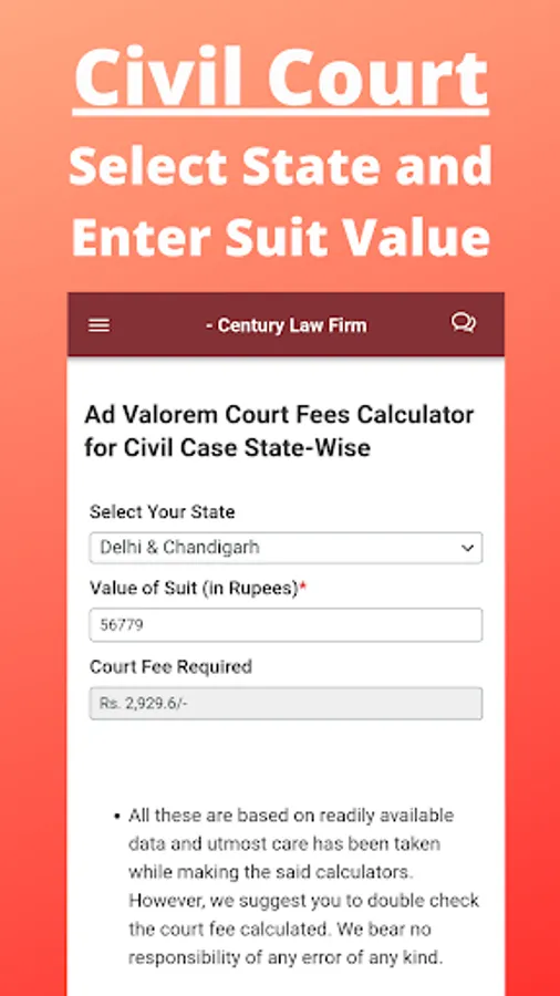 The court fee calculator app is created for the users to save their time and to make technical calculations easier. This app is designed in such a manner, that not only the law learners but also the common people can make efficient use of it. It includes features like-