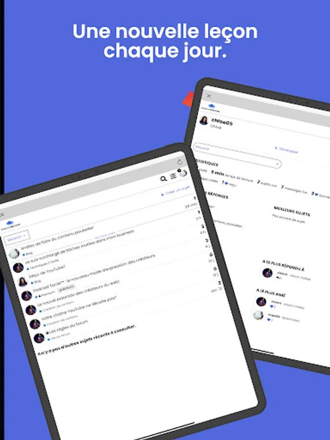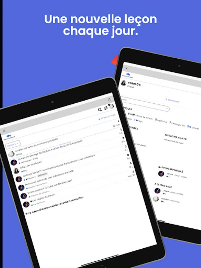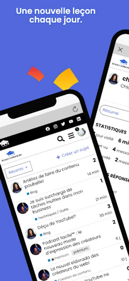 • CHAT ROOMS: to go further and rely on the rest of the community. Together, you participate in the life of the forum (user profiles, comments, media, publications, etc.) by publishing content visible to members of the school of creators™.