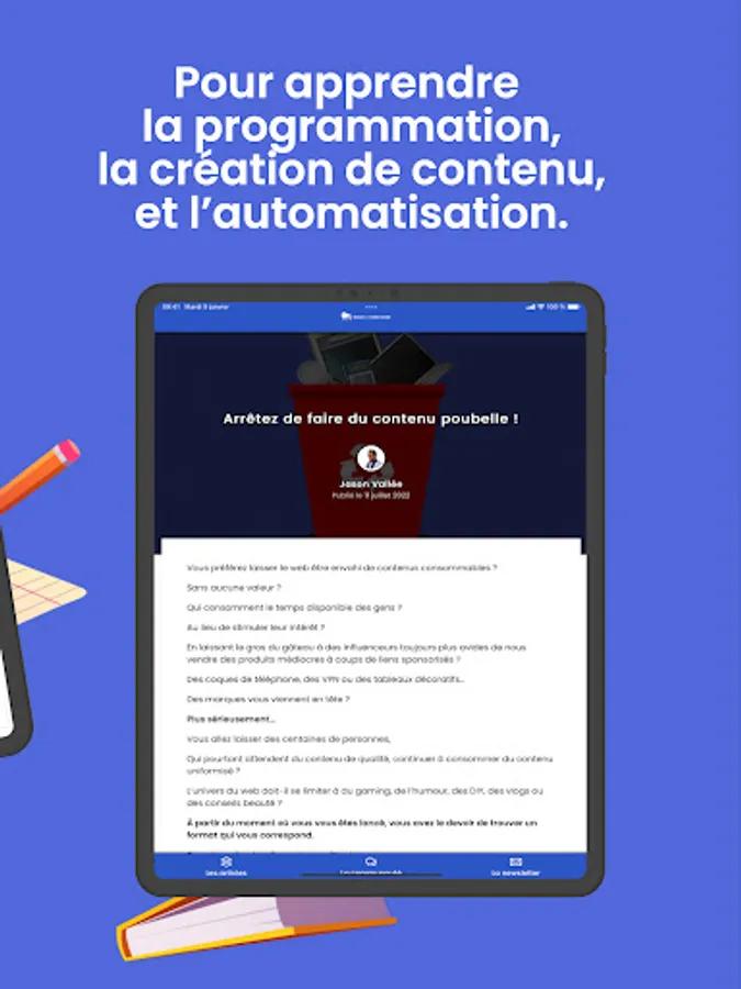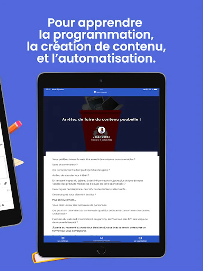 • ARTICLES: to help you progress and stay up to date with the latest trends in digital practices. You will find in our daily contents all the good practices, the tools, the material, the resources in terms of visual creation, production of audio/photo/video modules, learning of referencing, automation, use social networks and much more!