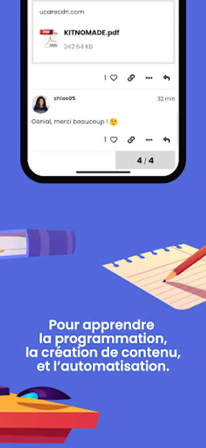 • TRAINING: no more long videos costing several hundred euros. Make way for daily 3 to 6 minute modules focused on a specific problem. You will find a new lesson every day in the areas of content creation, marketing, web development, graphic design, communication, marketing, automation and social networks. React below each topic and extend the discussion by helping each other together!