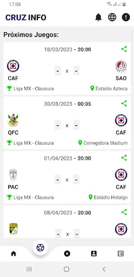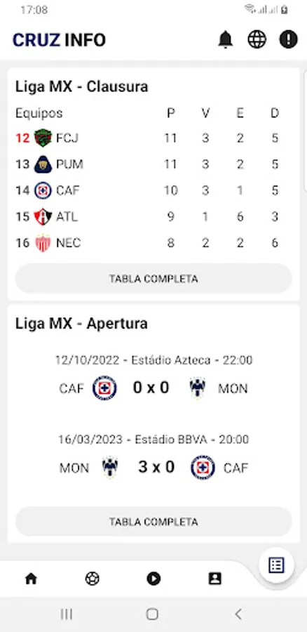Cruz Azul is a team that participates in several important championships in Mexico, including Liga MX, Copa MX, and the CONCACAF Champions League. The Cruz Info application offers users detailed information on the matches and results of all these championships, allowing fans to follow the team in each of its competitions.