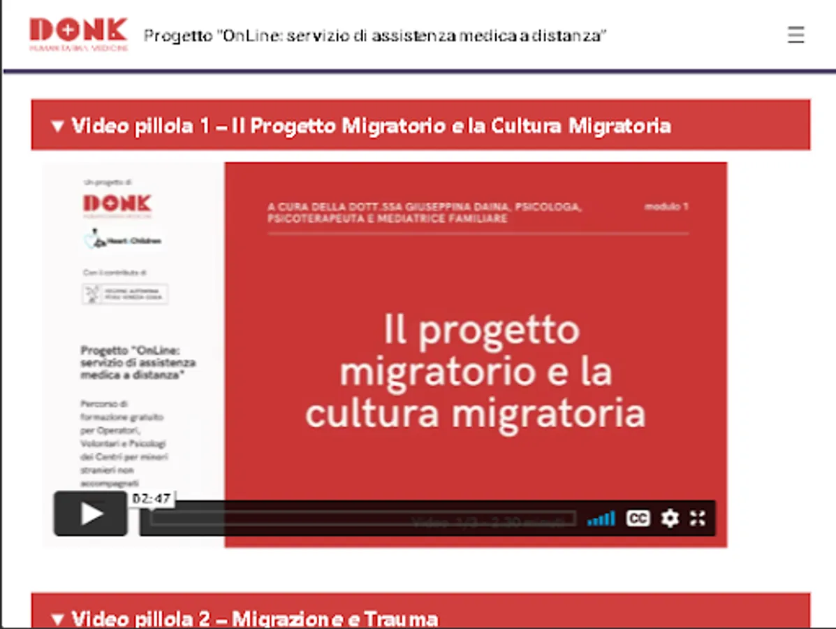 Through this platform we provide distance training, in synchronous and asynchronous mode, for operators, volunteers, health and paramedical personnel involved in the reception of unaccompanied foreign minors and for the Centers that also offer assistance to fragile people.