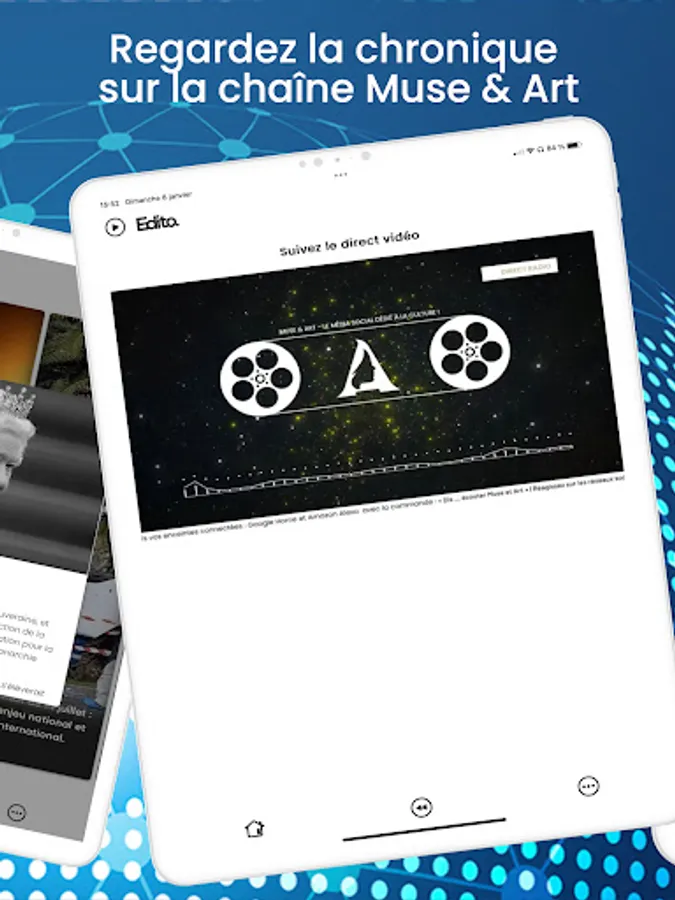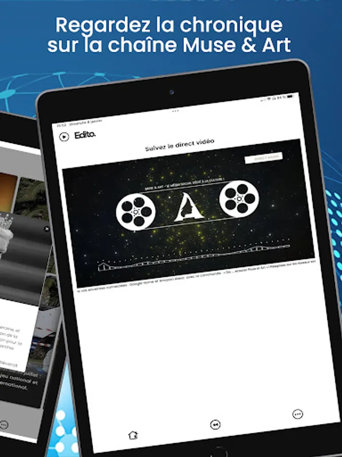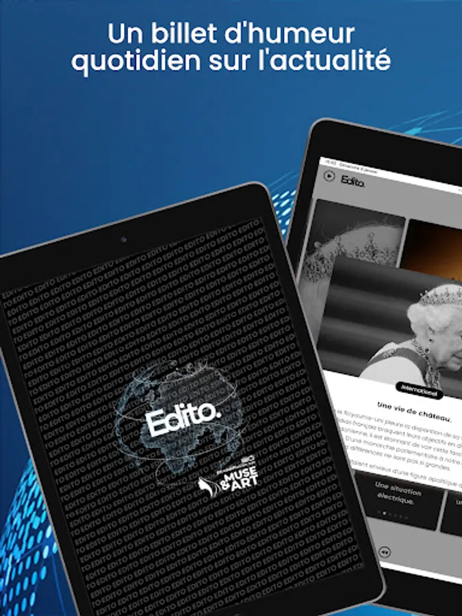 “Edito” is available on all content aggregators. It comes in a radio/TV column broadcast every morning at 7:40 a.m. on "Muse & Art".
