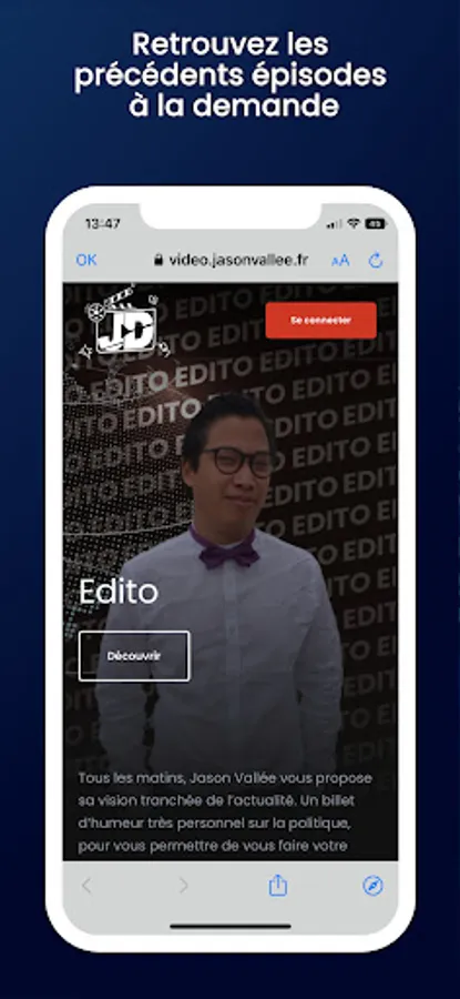 - A replay button: to access all previous episodes via the "JasONdemand" platform.